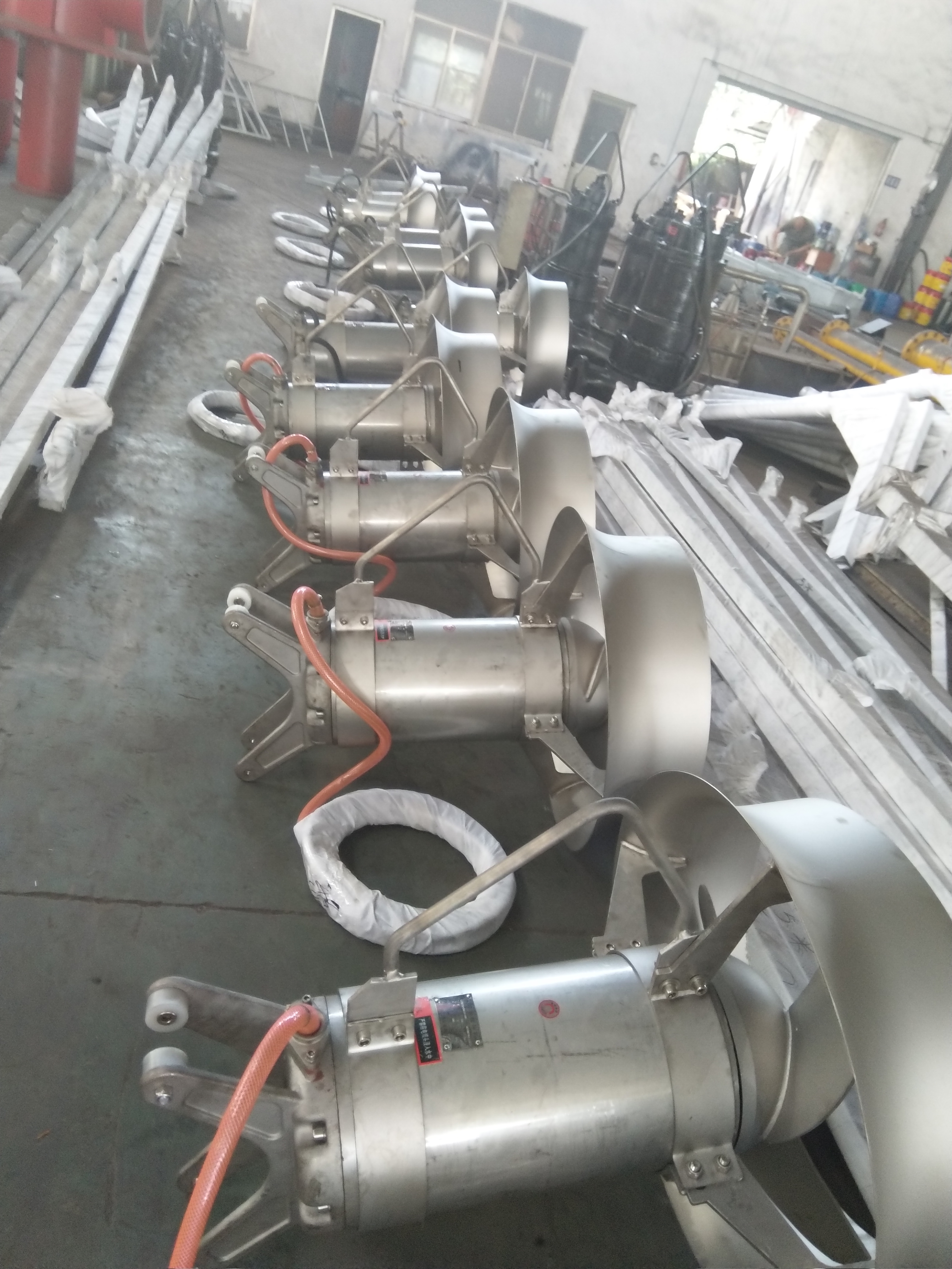 h. 潜水搅拌器导轨系统可自由调整搅拌机的提升和下降及转动角度,并无须排空水池情况下拆卸和安装搅拌器。叶片具有自清洁功能。